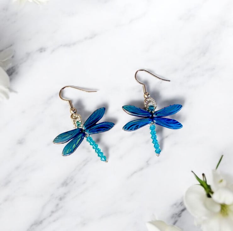 The full drop of the earring measures approximately 5cm and the dragonfly itself, measures 3.5cm long and 3cm wide.