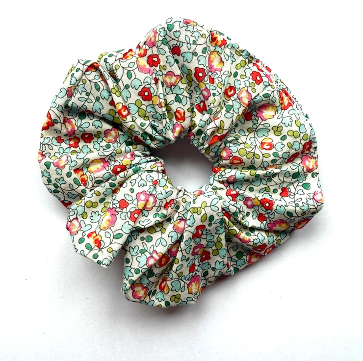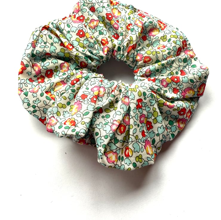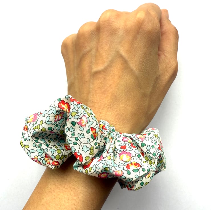 A beautiful scrunchie made out of Liberty London Fabric, featuring florals.
