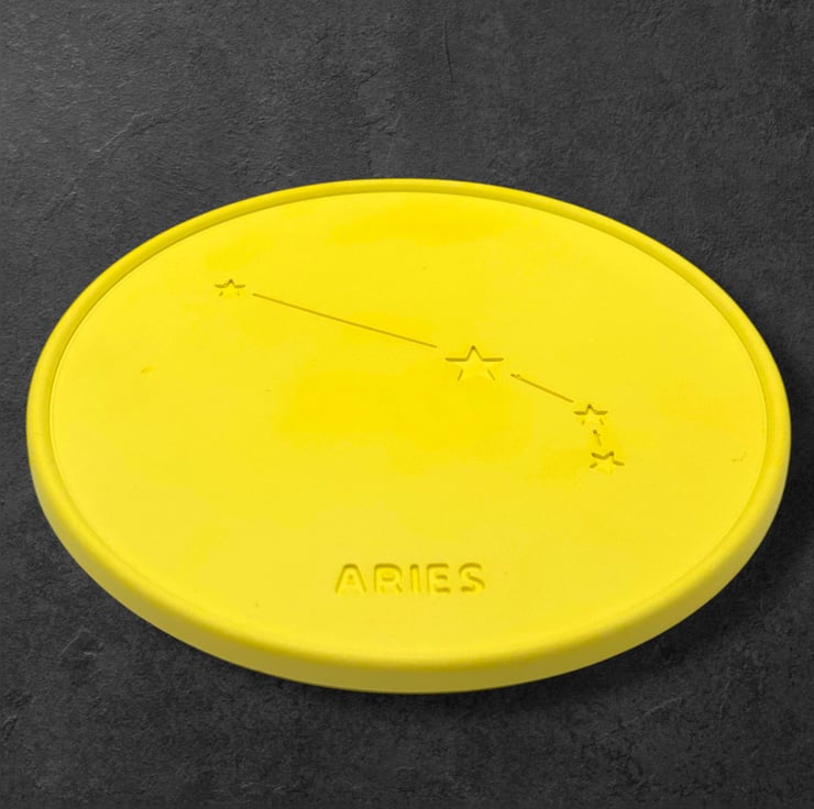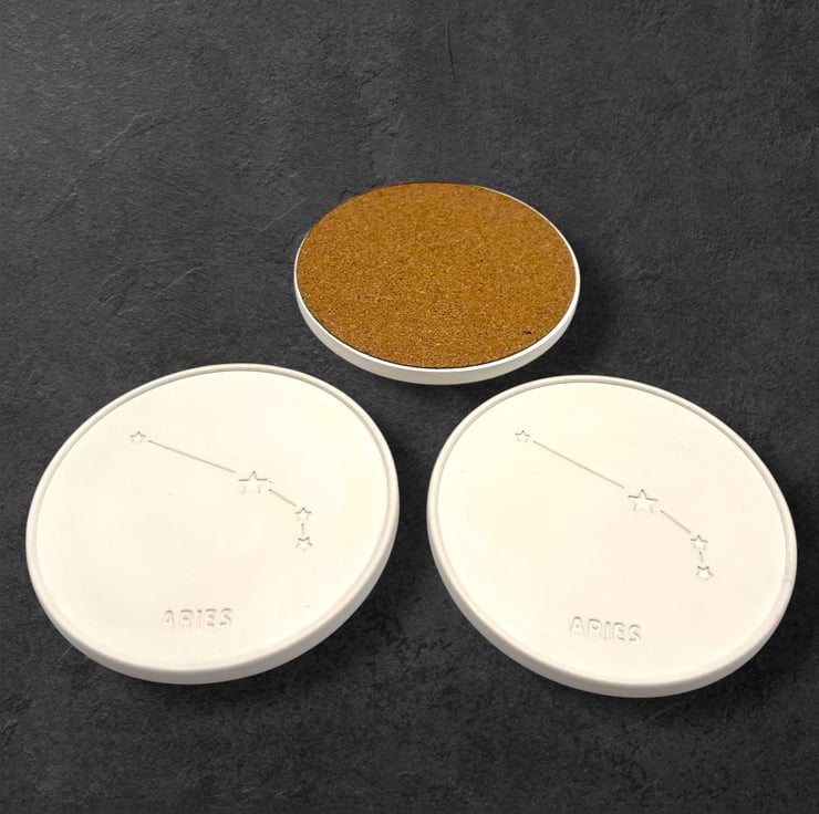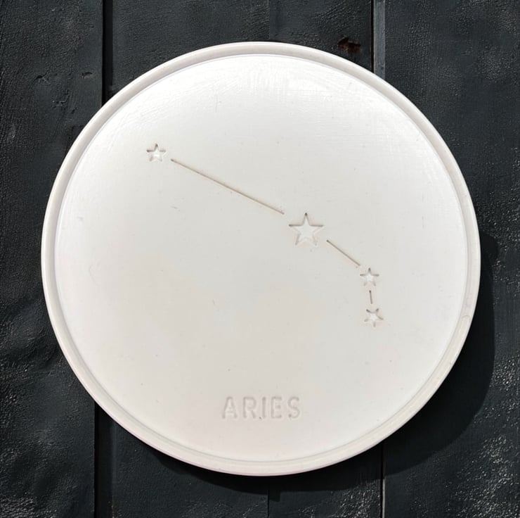 This Aries zodiac sign coaster makes a thoughtful gift for anyone born between the 21st of March and the 19th of April . It features a design of the Aries constellation in the middle with the text “Aries” imprinted below and a slightly raised outer rim. It is made from Crystacast which gives the coaster a dense and hard feel, similar to marble, and it comes in a naturally white colour.
