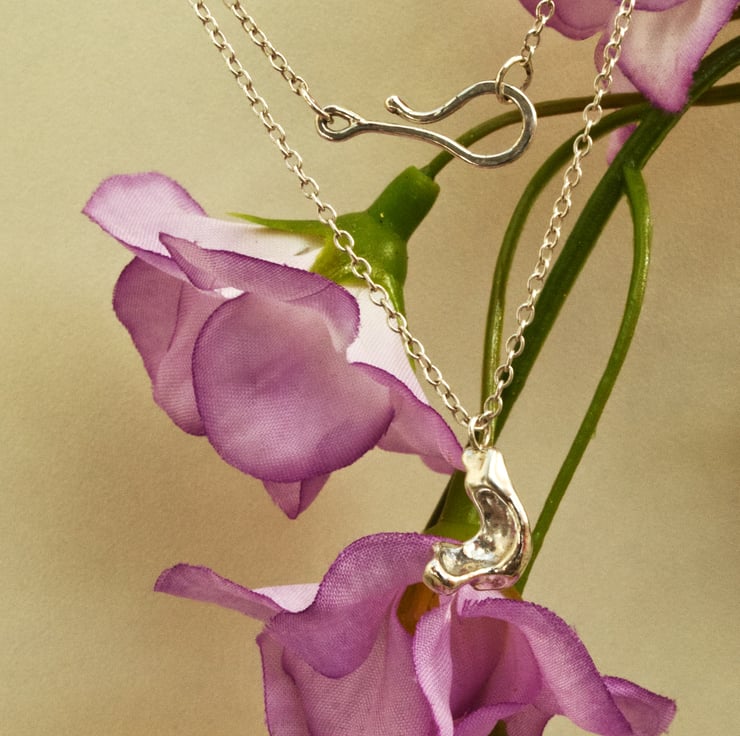 The pendant is offered on an 18" silver trace chain with a handmade clasp. Other chains are available on request.