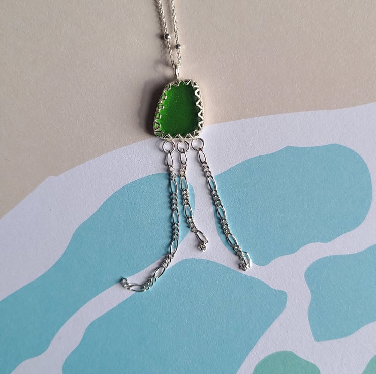 Kelly Green sea glass silver jellyfish pendant P10