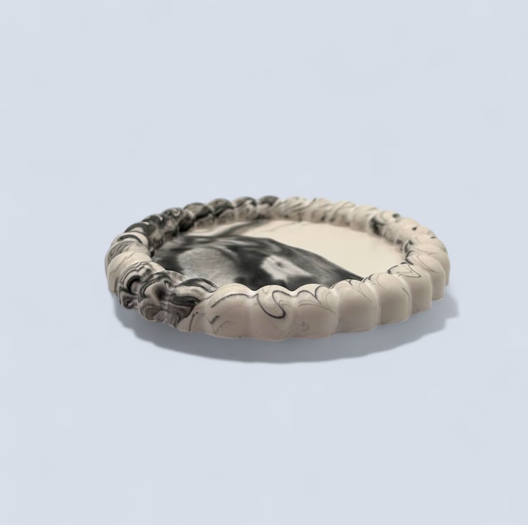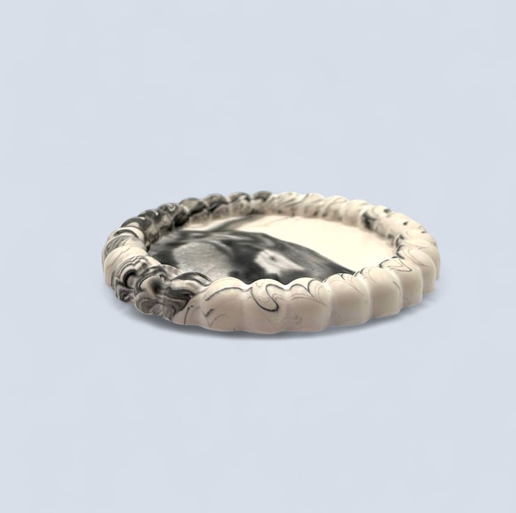 Designed to bring quiet order to everyday spaces, this marbled trinket tray balances texture and calm. The soft swirl of black and grey is offset by the raised bubble edge, creating a piece that feels both grounding and considered. Made to hold the small things you reach for daily, it turns simple routines into moments of intention.