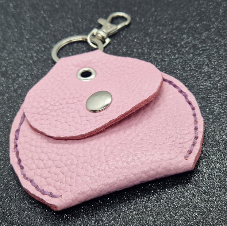 Each piece is hand cut and punched, so not digital cut precision, then hand-stitched with a strong waxed co-ordinated braid, again, not machined so not spirit level straight. If you want clone perfection, find it elsewhere. I’ve attached a keyring clasp so can be used as a bag decoration, on a belt loop or with your car key.