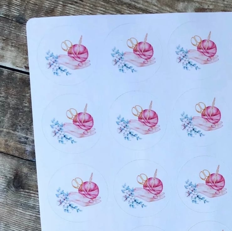Sheet of 20 circle shaped stickers with crochet illustration - great for packaging any of your crochet items that you sell.