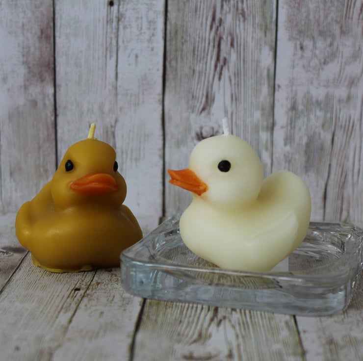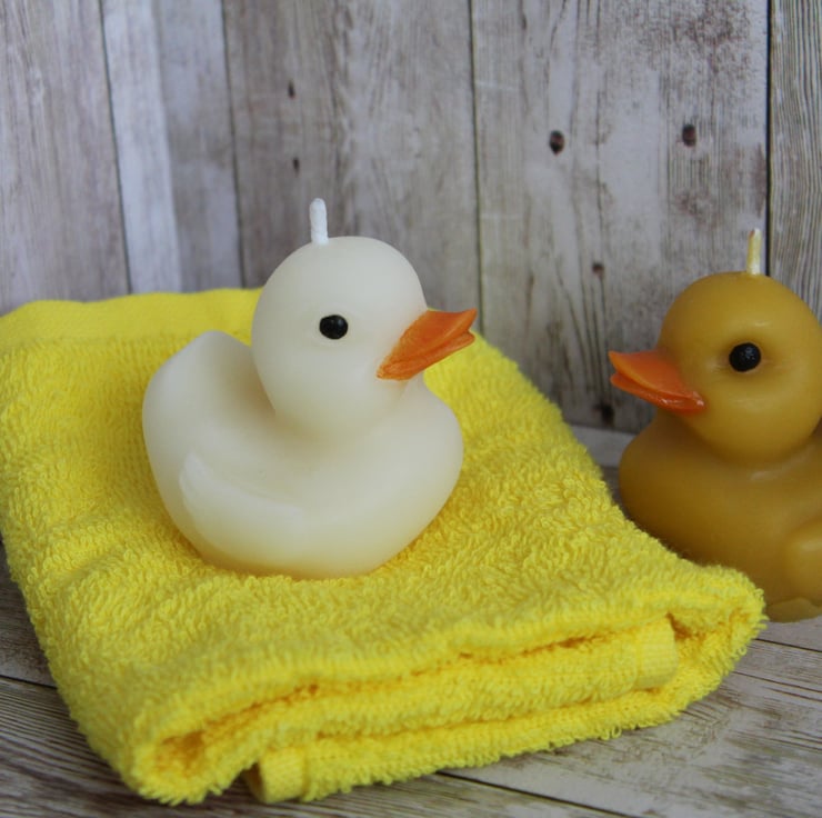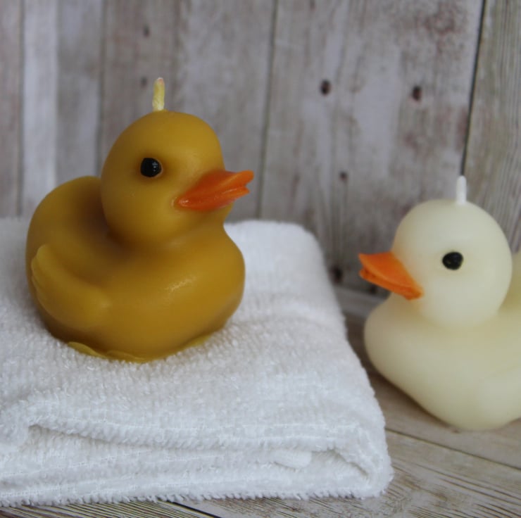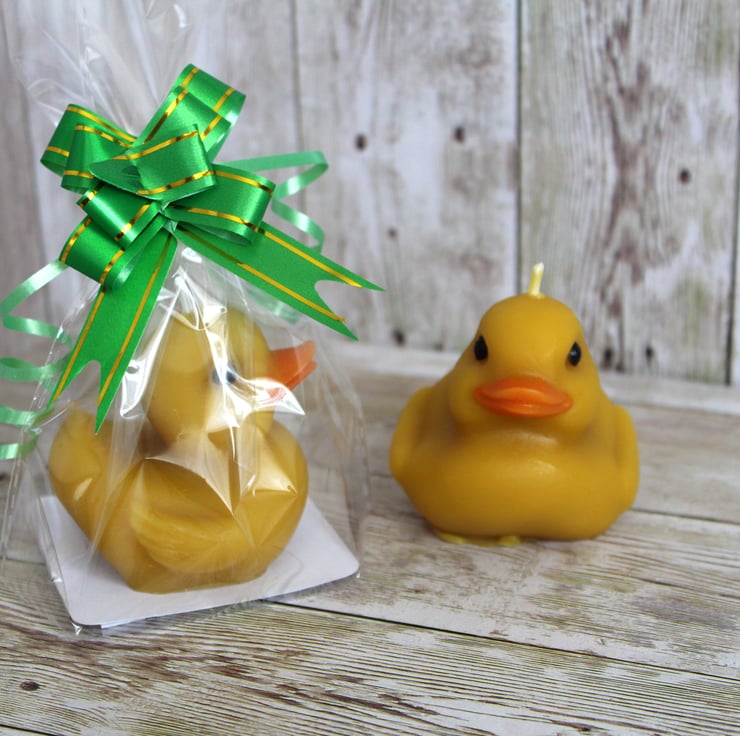 These fun Duck Beeswax Pillar Candles look like a rubber duck, but are made from natural beeswax with a cotton wick and hand painted eyes and beak! They are 6cm tall (excluding wick) and 6cm widest part of the Duck. These Candles are perfect for any time of year especially if you like Ducks or to give someone who enjoys a relaxing soak in a bath!