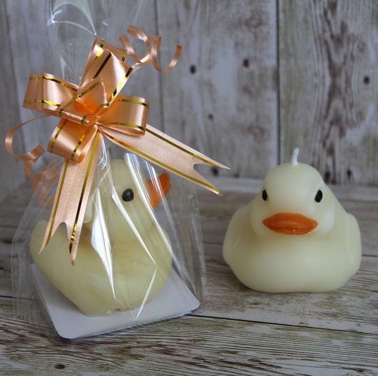 Each Duck Candle comes in a cellophane bag with a choice of coloured ribbons.