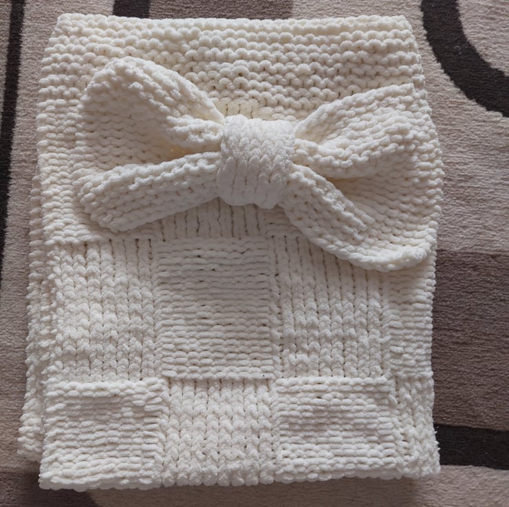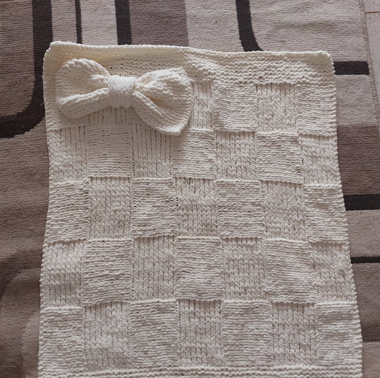Hand knitted baby blanket.Hand wash in warm water. From soft acrylic thread.