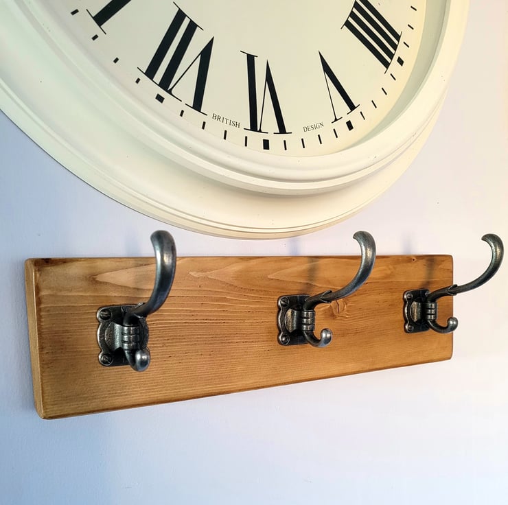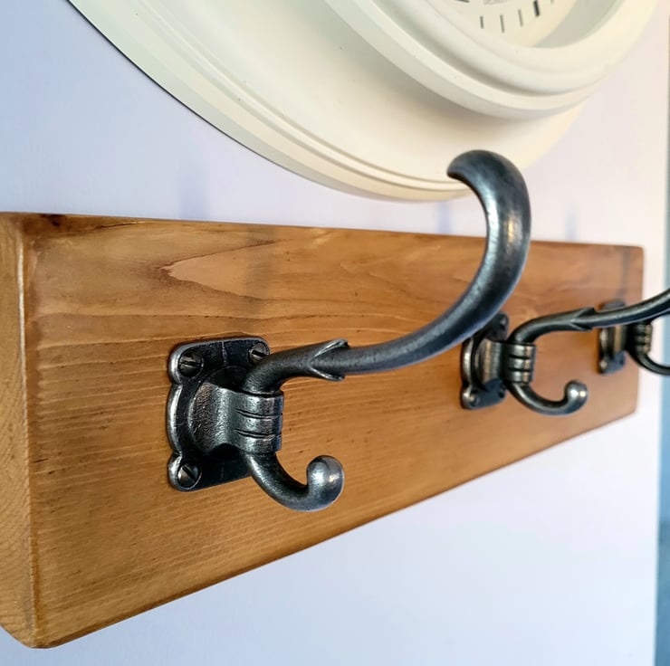 Each piece of wood is unique with all it's life charm complete with knots, bows and natural life marks. All pieces are worked by hand to meet the highest standards. Each piece offering real quality and makes a statement and wonderful addition to any entrance or room. With enough space between hooks to allow for big Puffa coats and bags to hang individually without being on top of each other. With hidden fixings, our racks have 3 secure fixings hidden underneath 1, 3 and 5 hooks. The 2 end hooks won't be assembled to enable you to fix to your wall and there is a 3rd fixing if required on the larger racks.