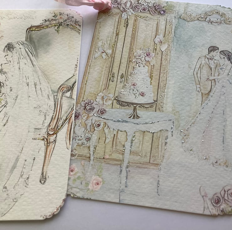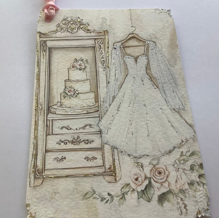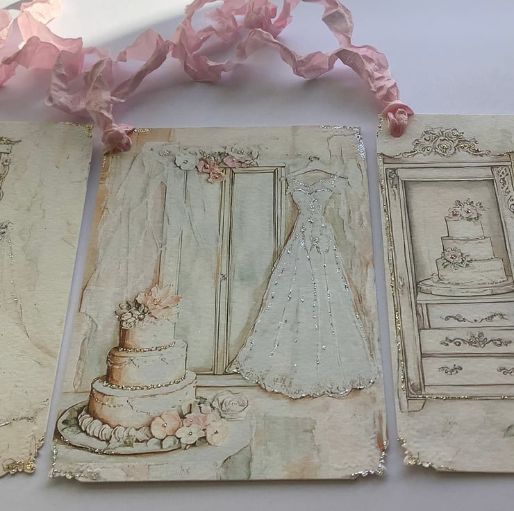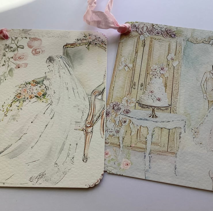 Five beautiful large wedding gift tags or reception tags for weddings. These are handmade in 300gsm watercolour textured neutral card and have cut and embossed corners. They have minimal glitter accents and crinkle seam binding ribbon. Vintage wedding theme.