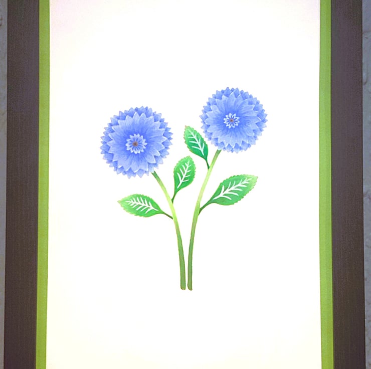 Genuine Made in UK Framed A3 Print of Blue Dahlia Light Green Border Wallart