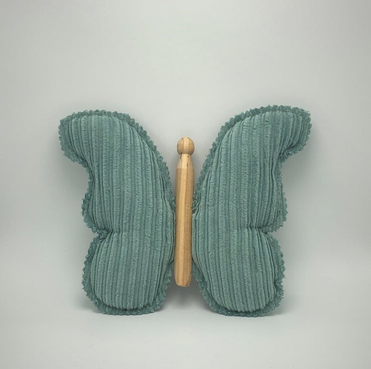Hanging Corduroy Sage Green Clothespin Butterfly Vintage Farmhouse Decor Gift