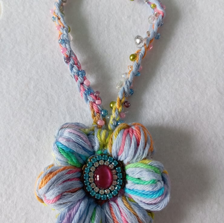 Very pretty single crochet puff flower pendant necklace.