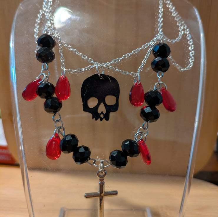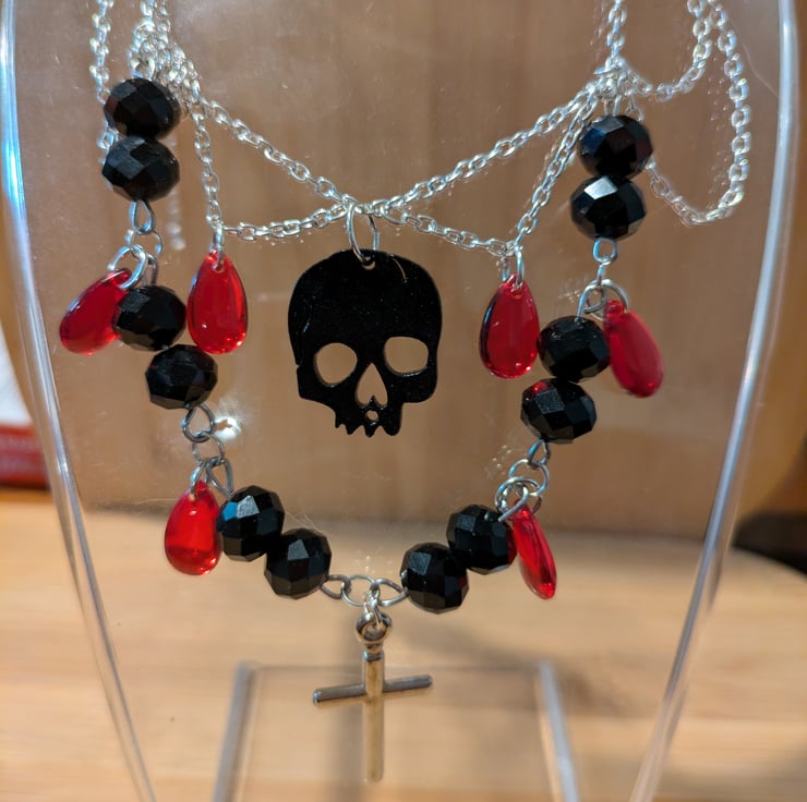 This is my more gothic design with a mix of glass, metal and acrylic beads hand crafted.