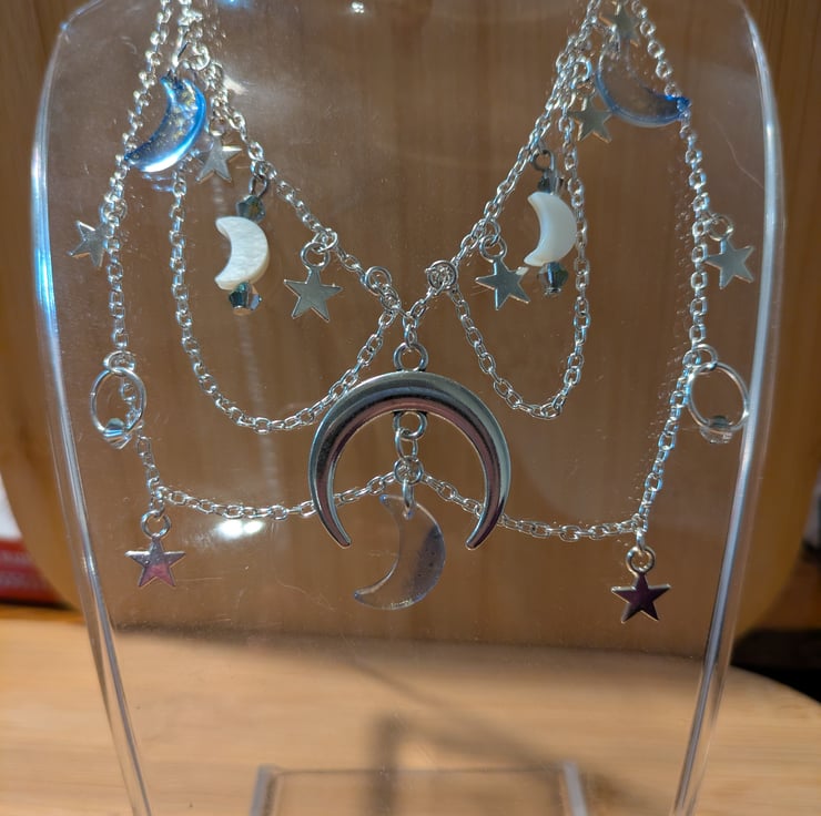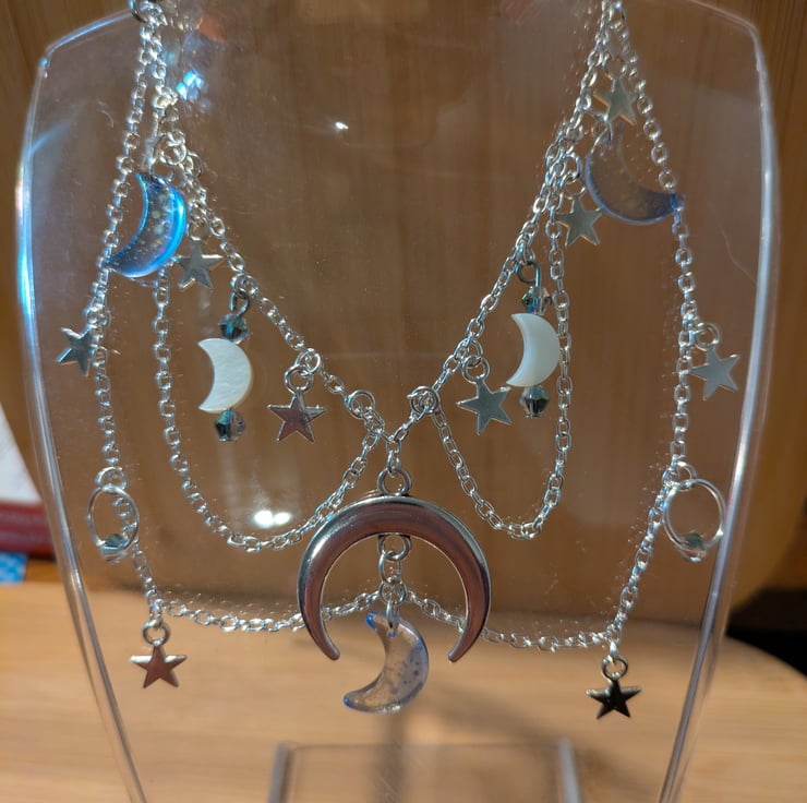 I took inspiration from the night sky, as well as fairy-core jewellery. I named this necklace after Nyx, the Greek Goddess of the night sky
