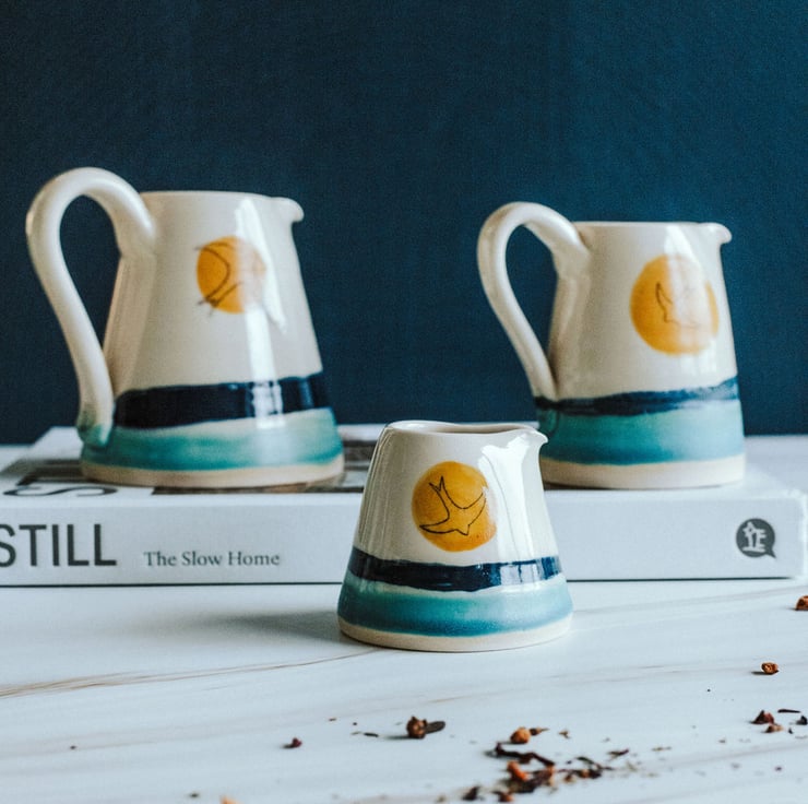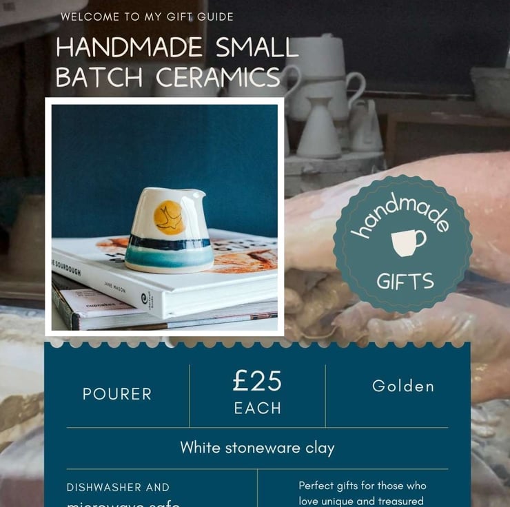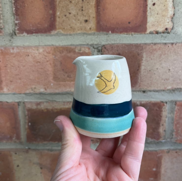 A beautiful handmade ceramic jug / pourer, perfect for a splash of milk for you coffee. These make perfect gifts for those who love to have something special and handmade on their table.