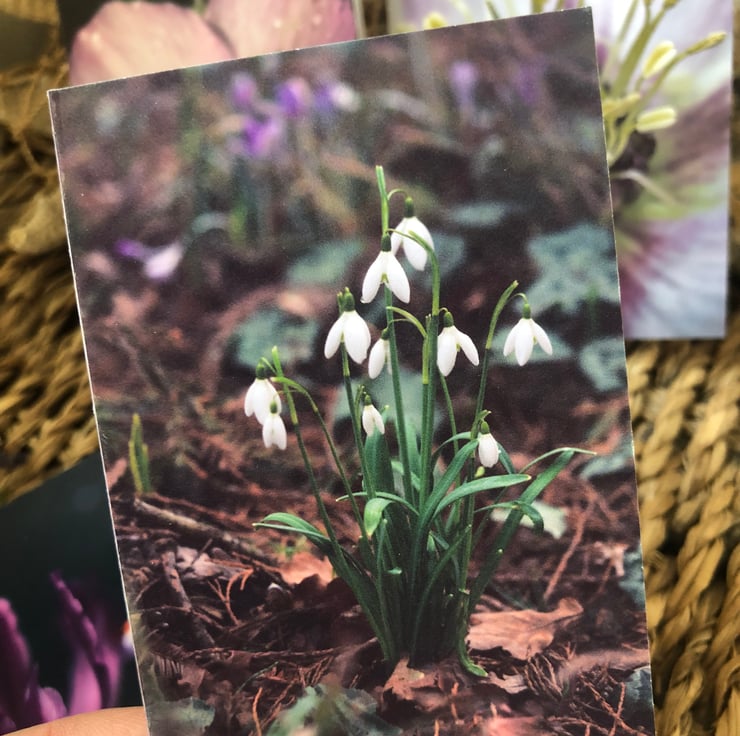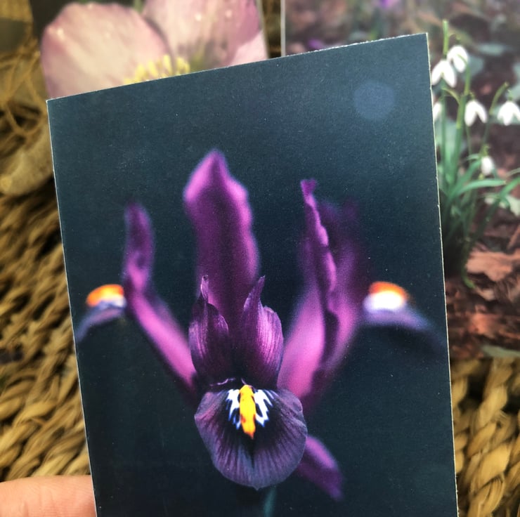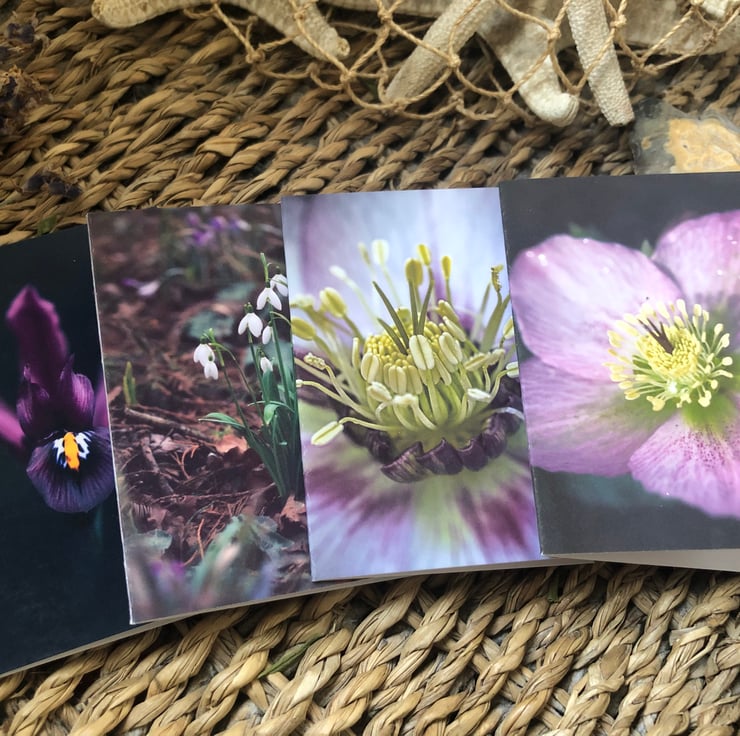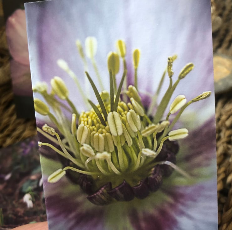 Designed from some of my nature photography shots taken during a beautiful sunny winter walk and features Hellebores, Snowdrops and Iris in moody shades of purple and pink.
