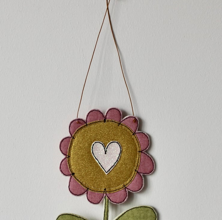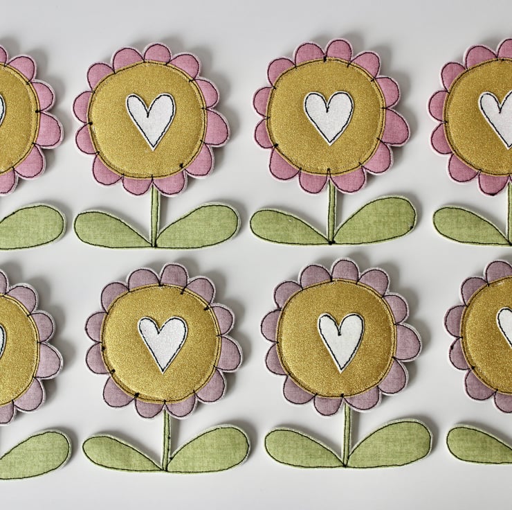 'Love you Mum' flowers are created using freehand machine embroidery, multiple layers of cotton cloth, 100% wool felt, glitter cloth and cut out by hand using very sharp scissors.