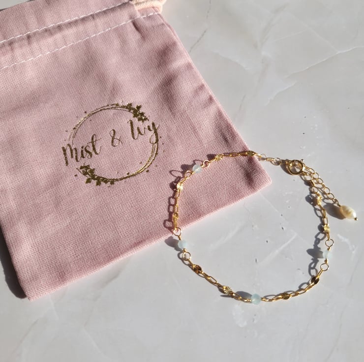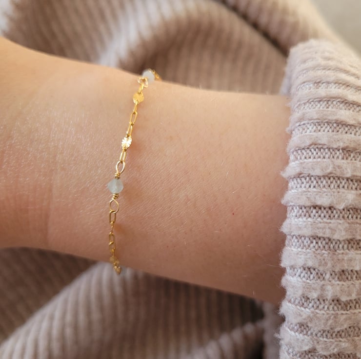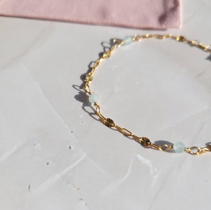 Aquamarine is the birthstone for March, so this delicate gold filled bracelet makes the perfect birthday gift for a friend or loved one with a March birthday.