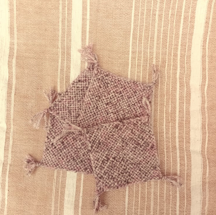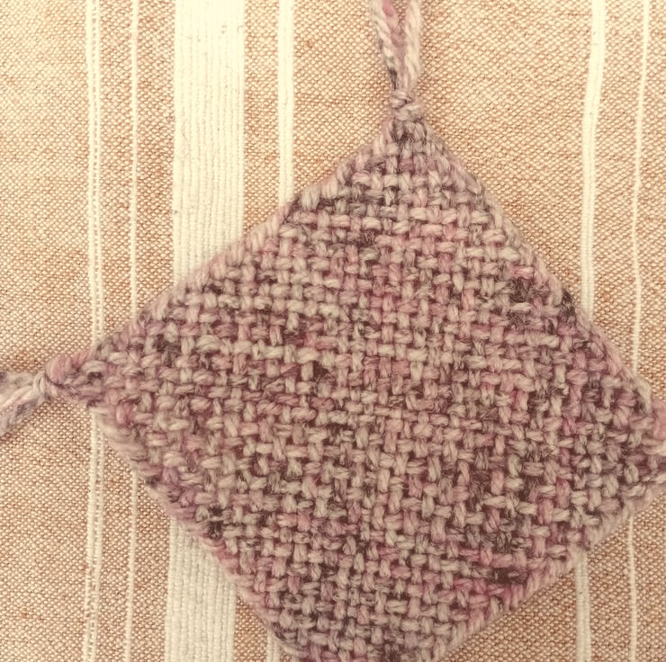 Set of 4 hand-woven drinks coasters made in tweedy yarn on a pin-loom using the continuous strand method.