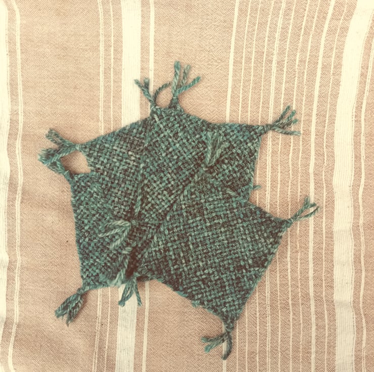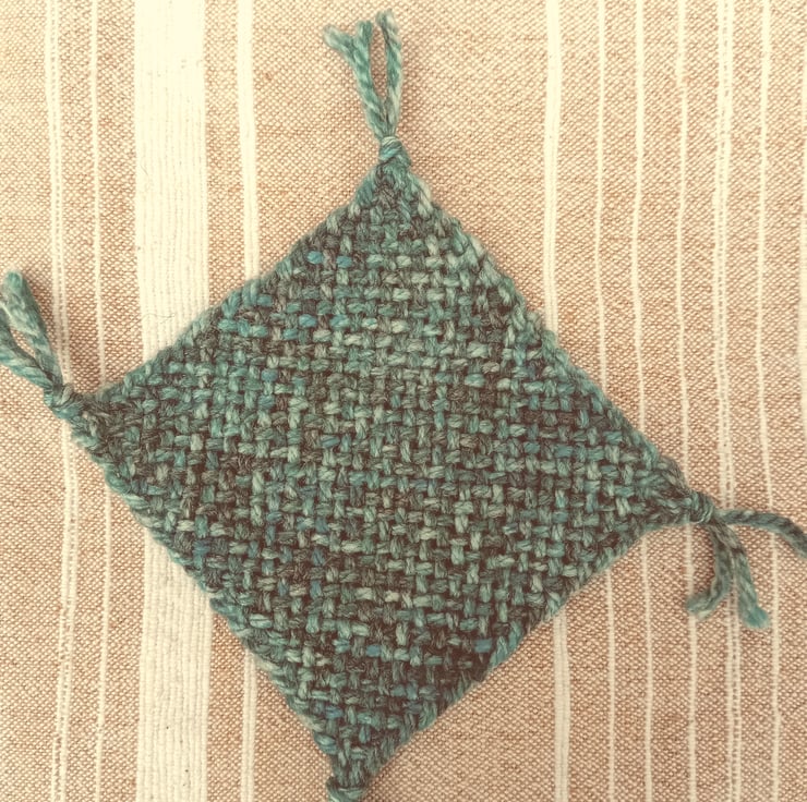 Set of 4 handwoven drinks coasters made in tweedy yarn on a pin-loom using the continuous strand method.