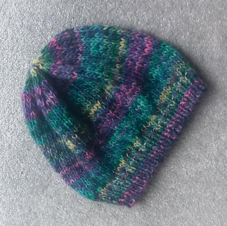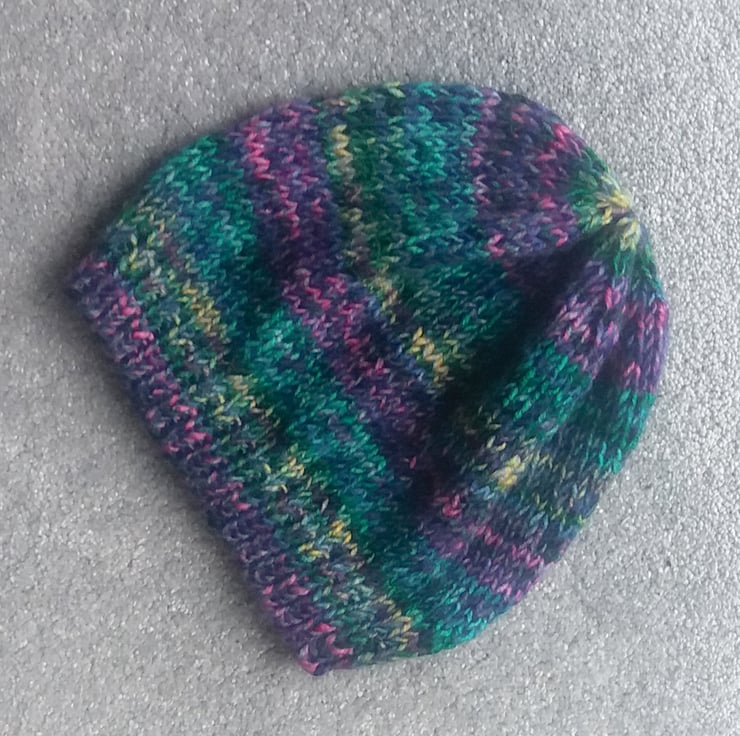 This hand knit PATTERN is for a beanie hat. To fit: child (adult). Circumference: 46.5 (53.5) cm or 18.5 (21) inches. The hat is knitted using chunky yarn and 5.5 mm and 6.5 mm knitting needles. The hat is knit flat and seamed or knit in the round.
