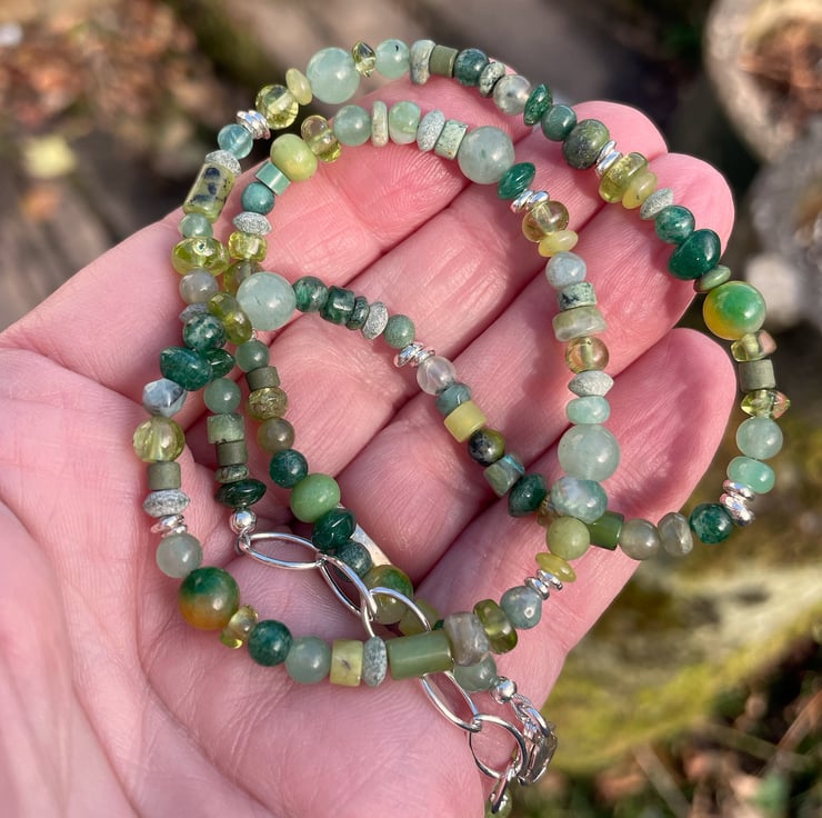 I have dotted pairs of silver beads throughout the gemstones to add light and interest.