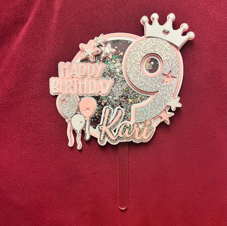 Make any birthday extra special with this custom shaker cake topper, designed with glitter, a princess crown, and a fun shaker effect filled with confetti! This unique topper is perfect for birthdays, milestone celebrations, and themed parties!