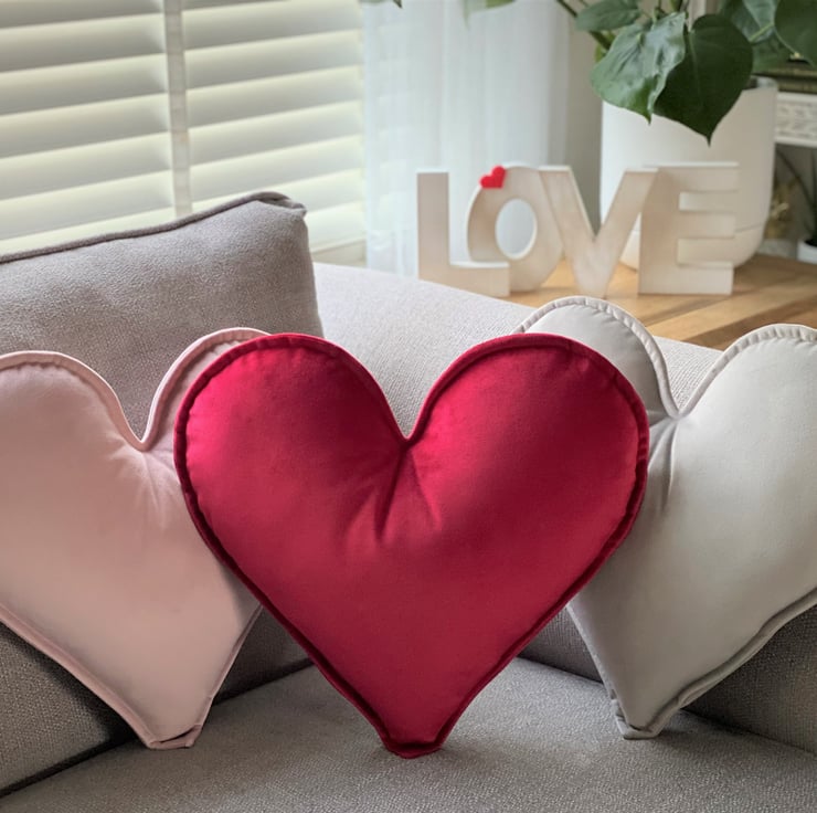 This heart-shaped cushion in a rich, solid raspberry red velvet is the ideal gift for your loved one this Valentine’s Day!