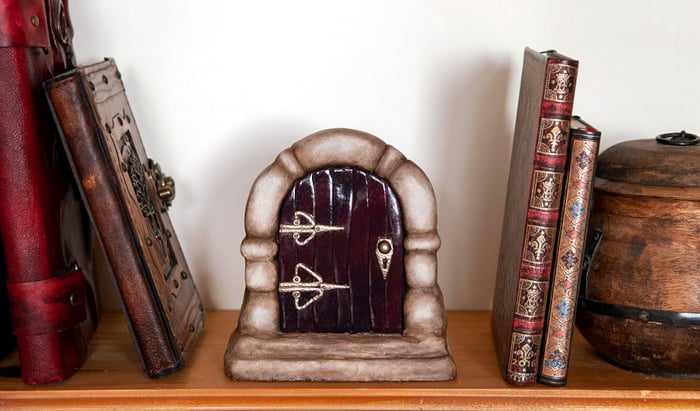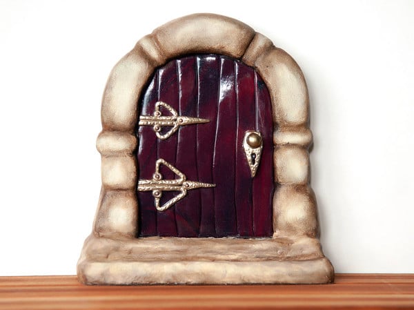 This little door shelf ornament was handmade by me using polymer and air dry clay and then painted using acrylics. There are some gilding flakes sprinkled on the steps to give effect of fallen leaves.