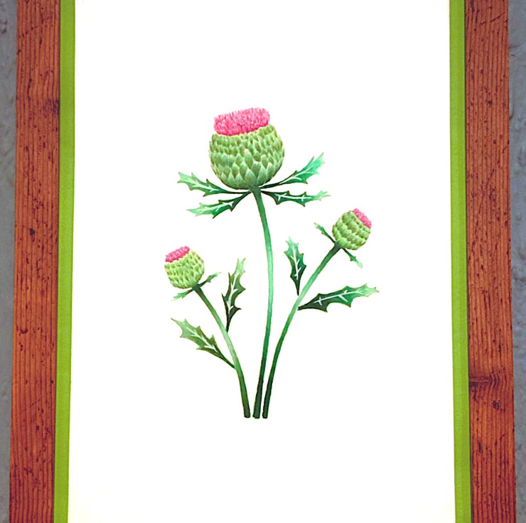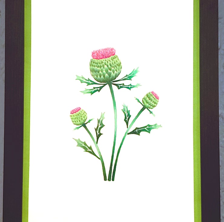 Genuine Made in UK Framed A3 Print Scottish Thistles Vibrant Light Green Border