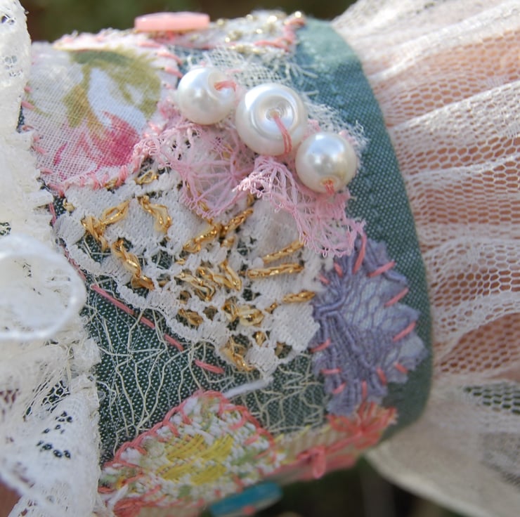 I have a large collection of vintage and new fabric scraps as well as button, lace and embroidery threads. This is such a lovely way to use them making something special for a loved one.