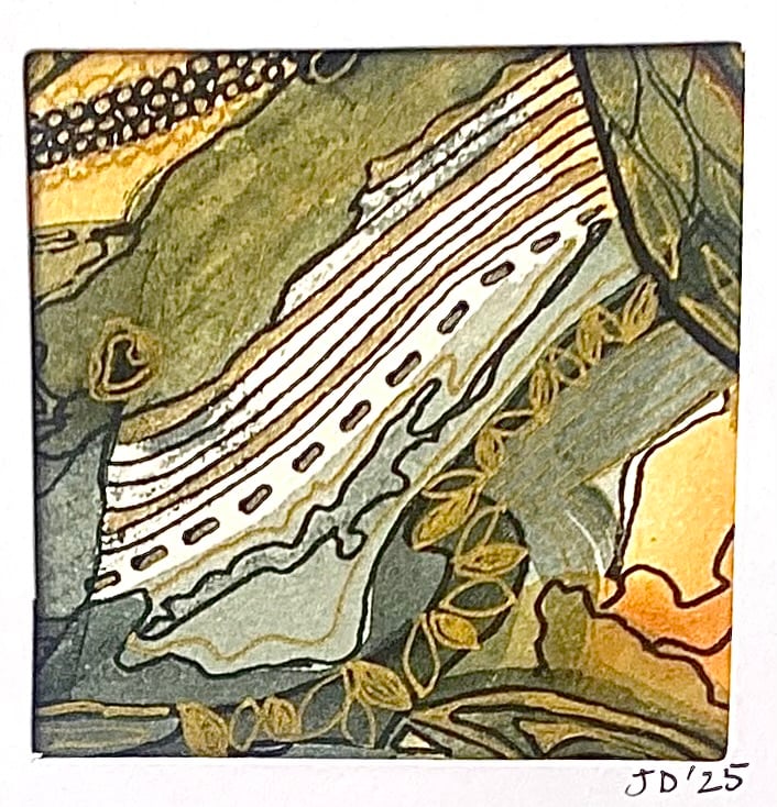 Hand painted abstract design on watercolour paper in 13.5 x 13.5cm, 300gsm card. Watercolour paint and ink. Blank inside for your personal message