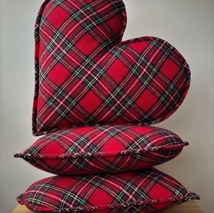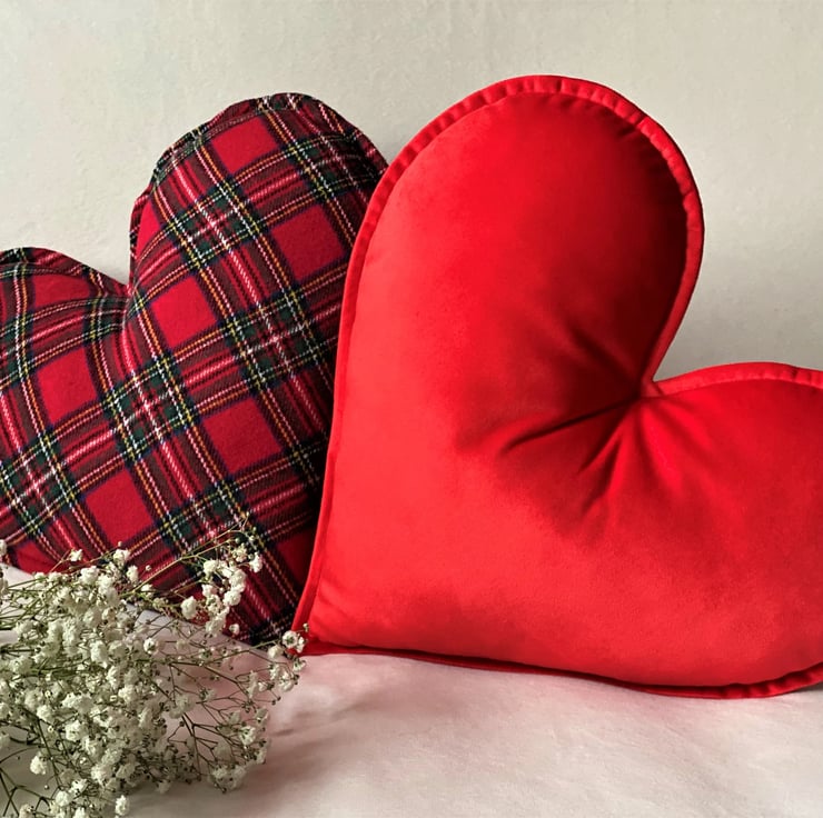 This heart-shaped cushion in red tartan is the perfect Valentine’s Day gift for someone special!