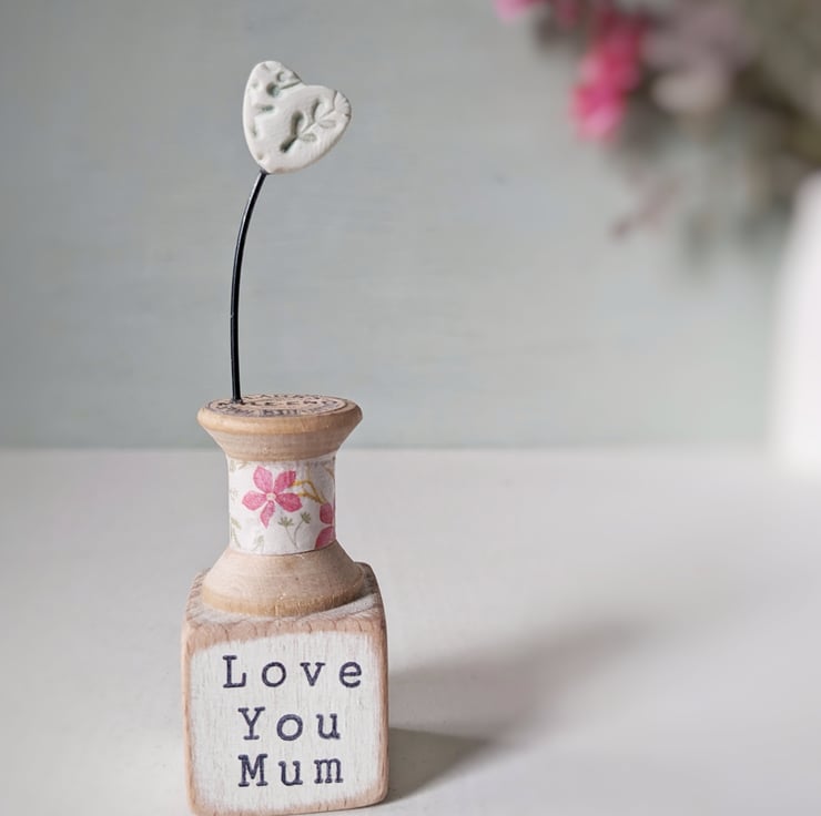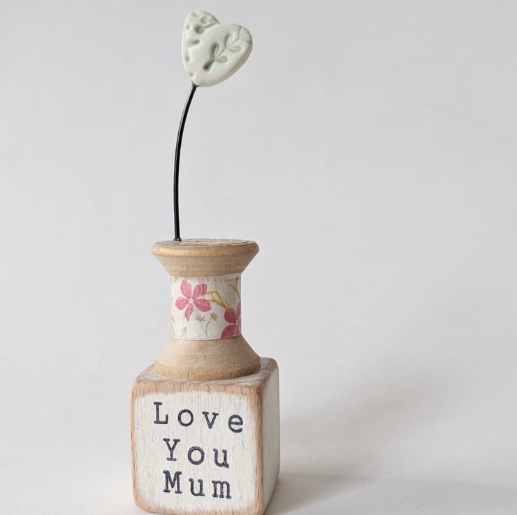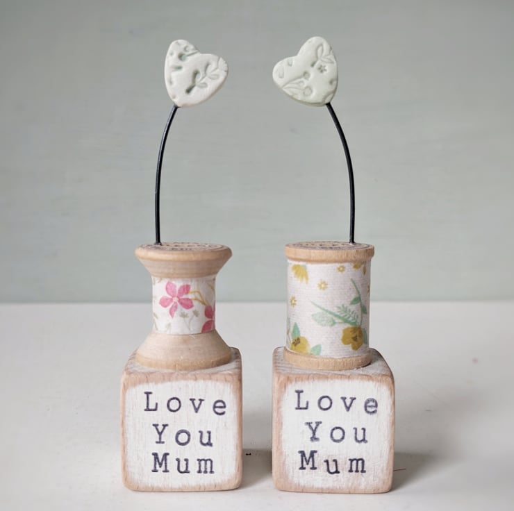 The painted block beneath has the hand stamped word 'Love You Mum'