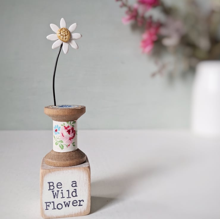 Clay Daisy on a Teeny Vintage Bobbin 'Be a Wild Flower'