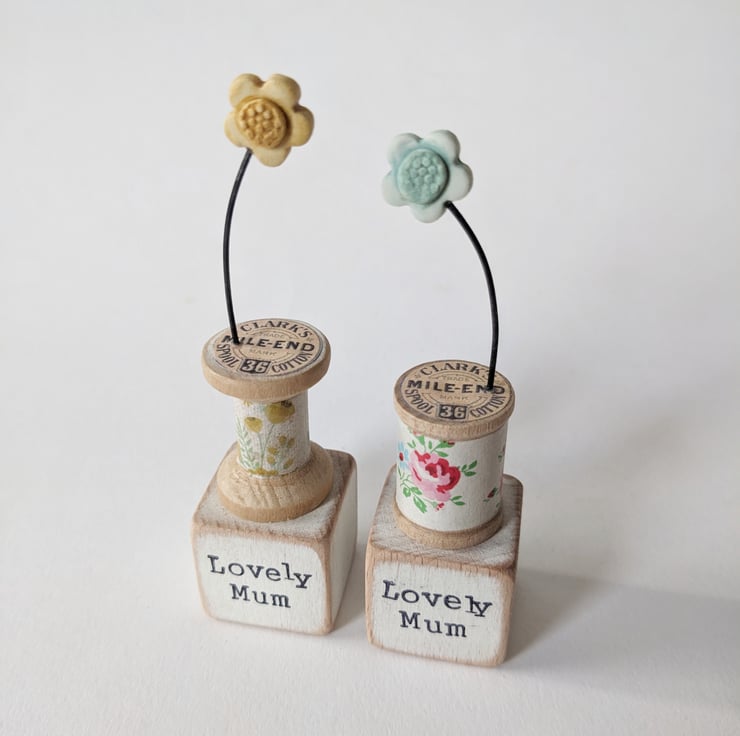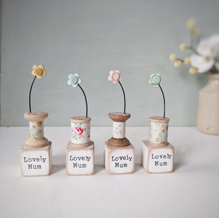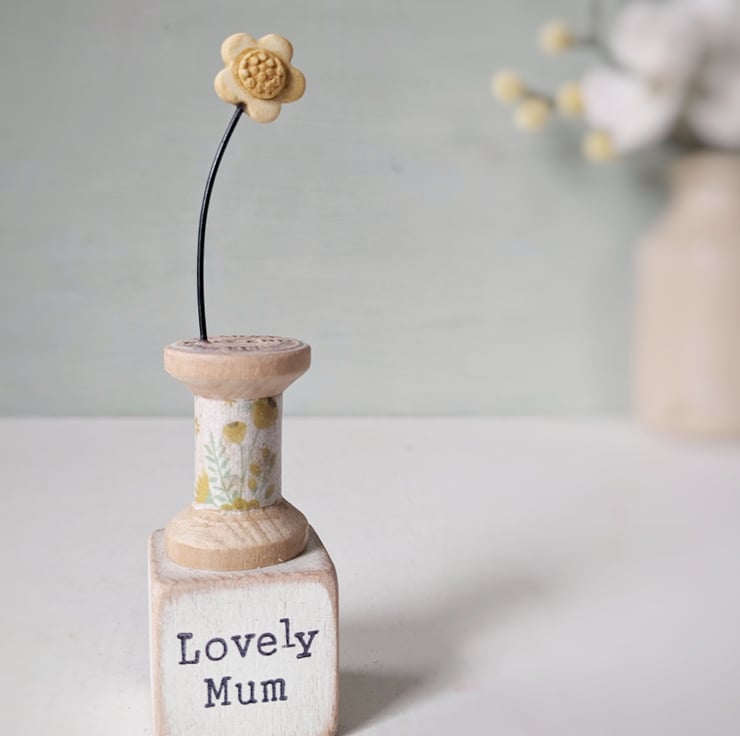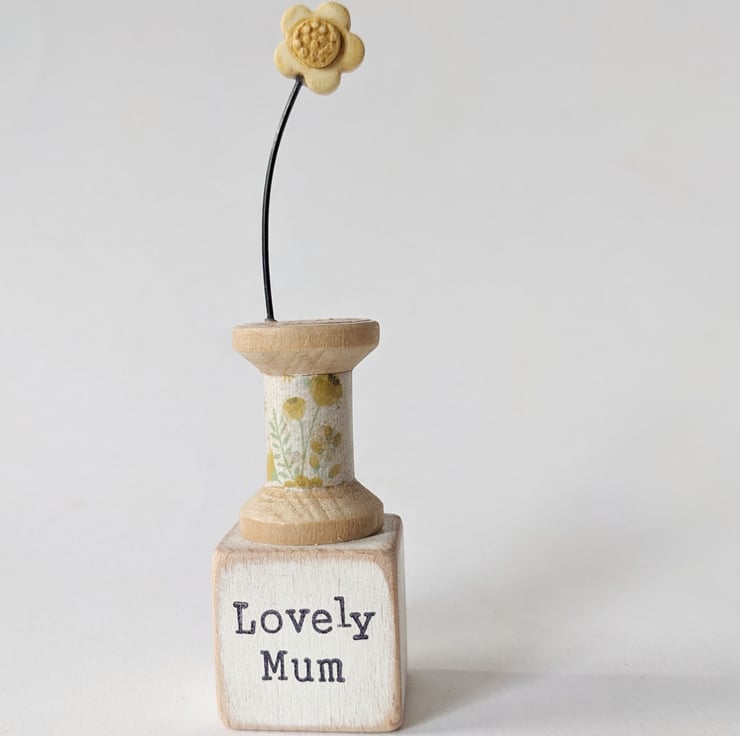 The painted block beneath has the hand stamped words 'Lovely Mum'