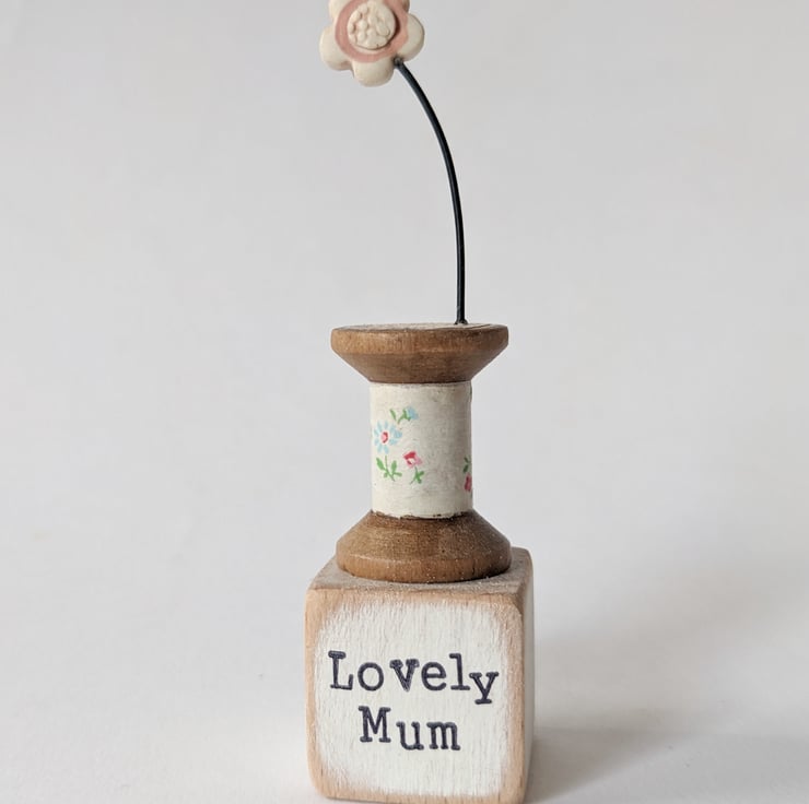 The painted block beneath has the hand stamped words 'Lovely Mum'
