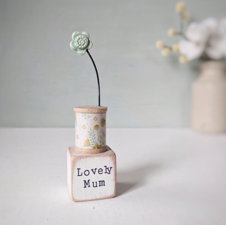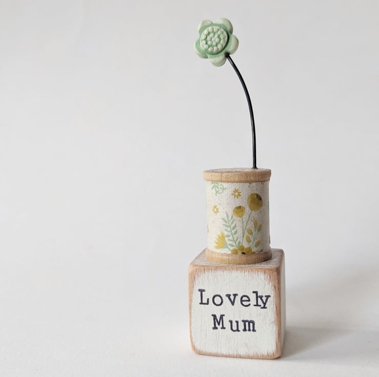 The painted block beneath has the hand stamped words 'Lovely Mum'