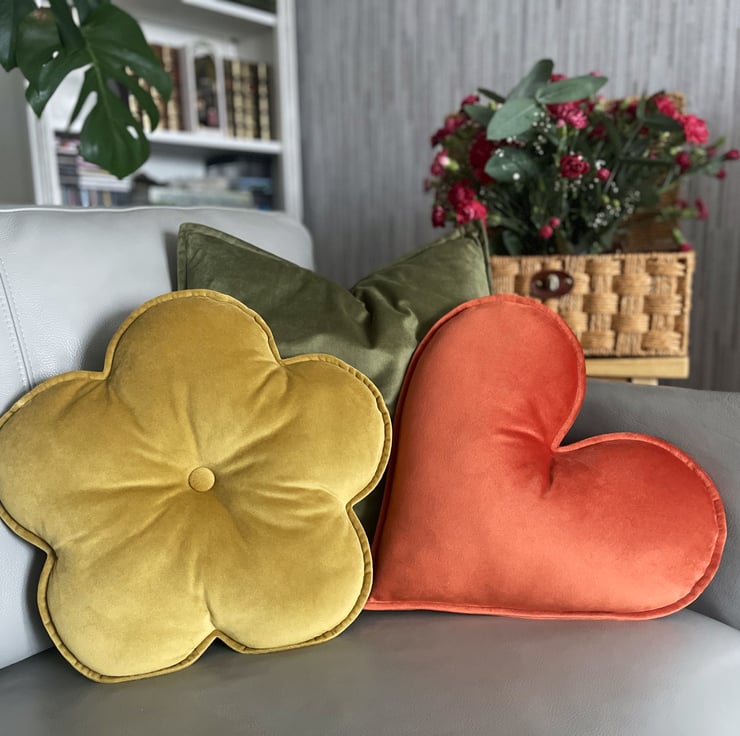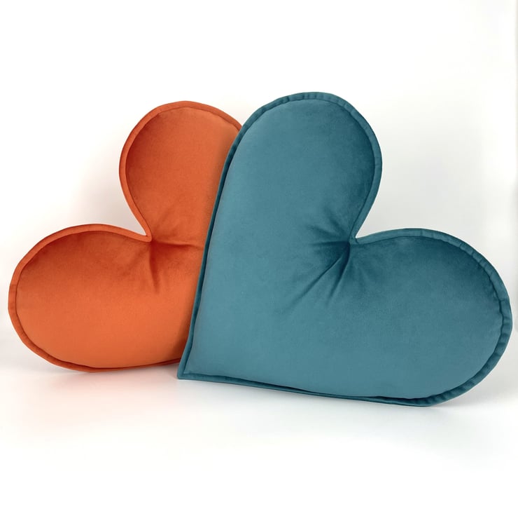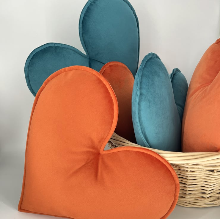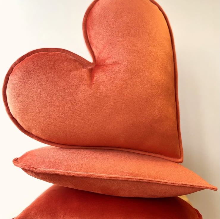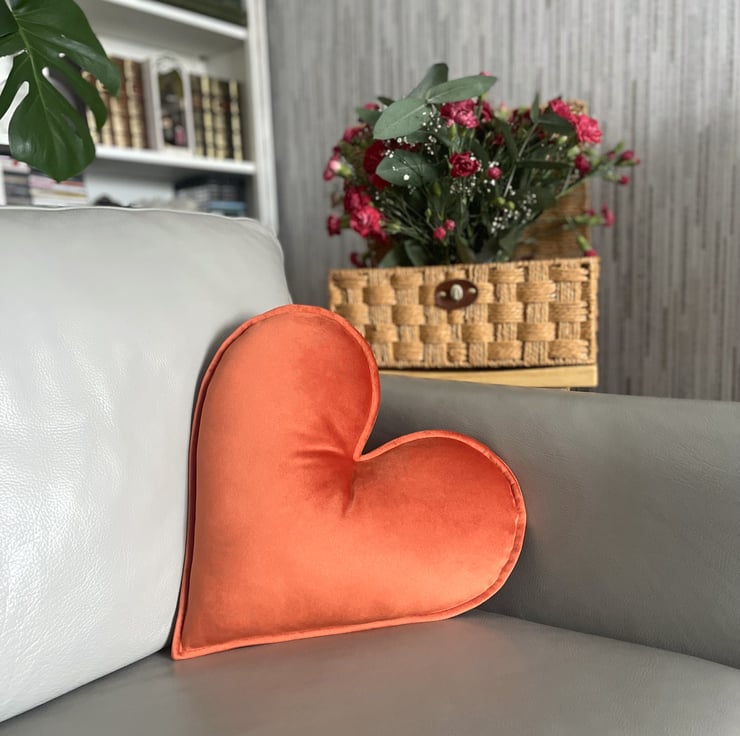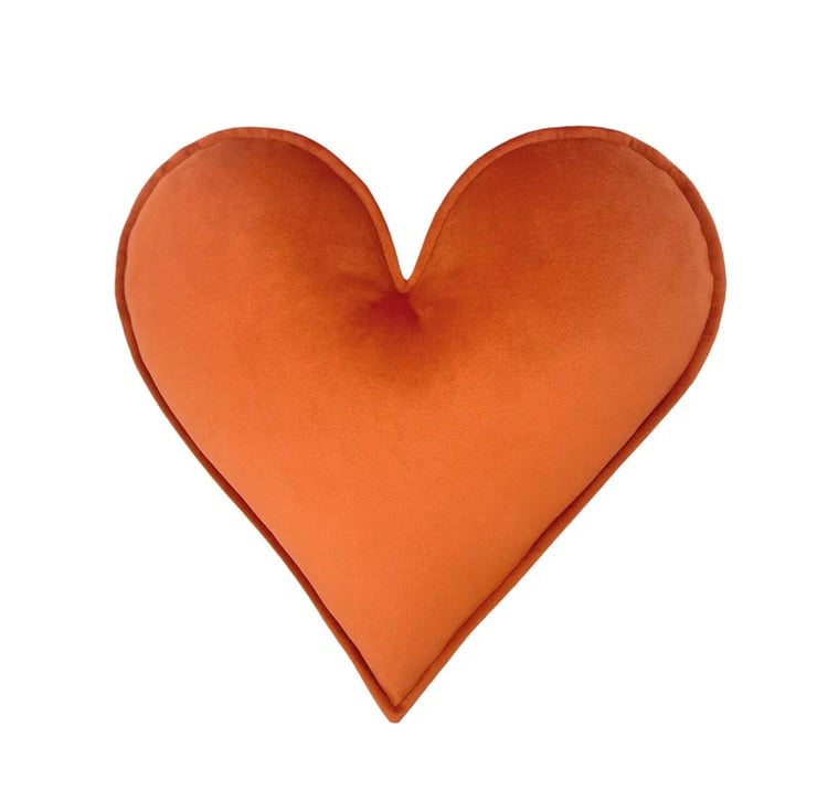 Brighten up your space with this vibrant heart-shaped cushion in paprika orange velvet!