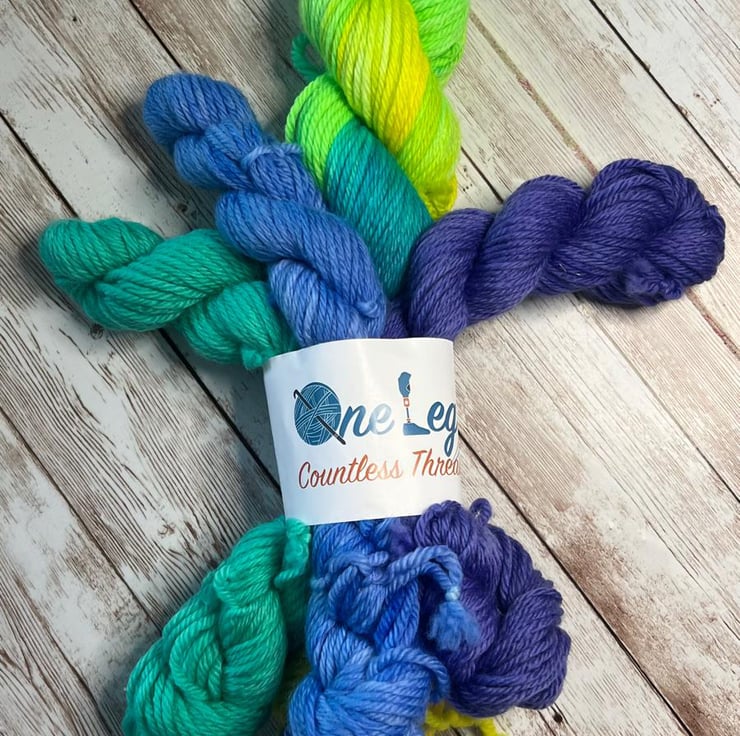 A hand dyed item, variations throughout the skein will be noticeable. Whilst every effort is made to minimise any colour bleed please check prior to commencing your project. Hand wash, warm/cool water. Do not wring, dry flat.