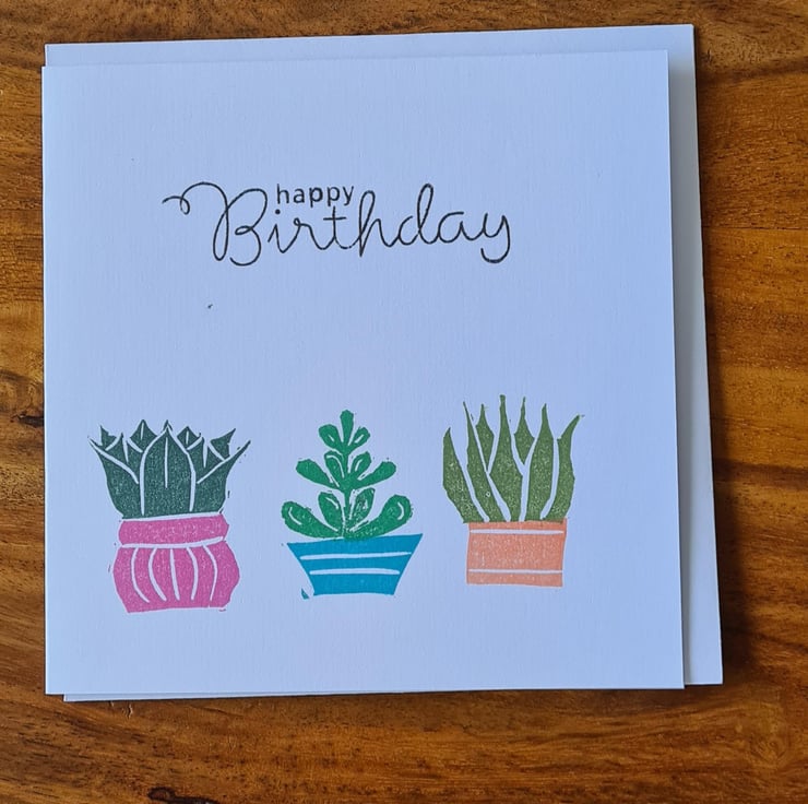 This card is handprinted from my own carved rubber stamps. I use quality ink stamp pads to create a lovely colourful design. This card is also available as part of a pack of five cards - see the 'multipacks at value prices' collection.