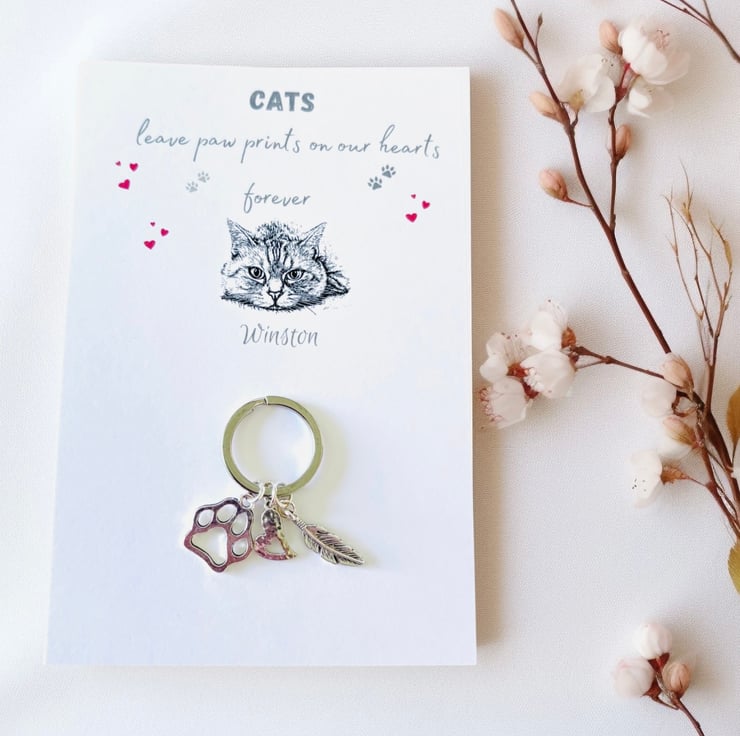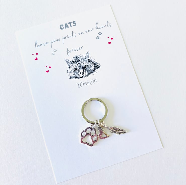 This sweet charm Keyring would a thoughtful gift for someone who has lost a special cat companion..