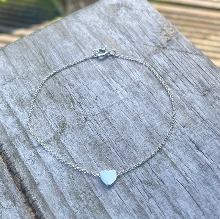 Sterling silver chain anklet with a sliding 6mm sterling silver heart, sterling silver clasp. Measurements are end to end including clasp. Available in an 8,5 inch length, 9 inches snd 9.5 inches, please state which size you would like, larger sizes are available in my shop at folksy, . Please state which length you would like please. Free gift box tied with ribbon.