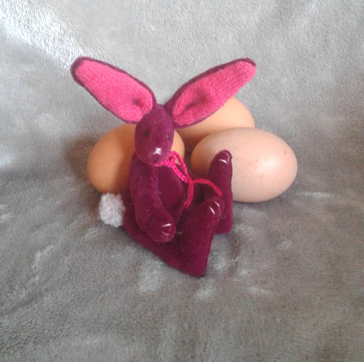 This little rabbit is named after the gorgeous juicy colours of this piece of vintage velvet alongside his ears which have been cut from a boiled cashmere knitted fabric (originally a jumper so worth saving and reusing).