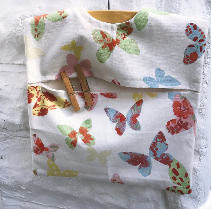 Lined Peg Bag - butterflies cotton canvas fabric.