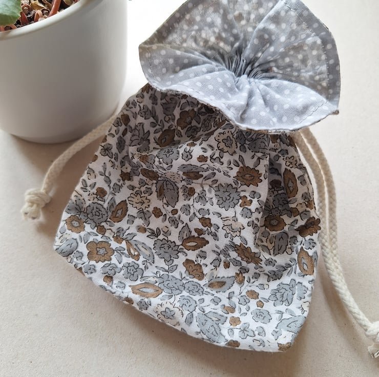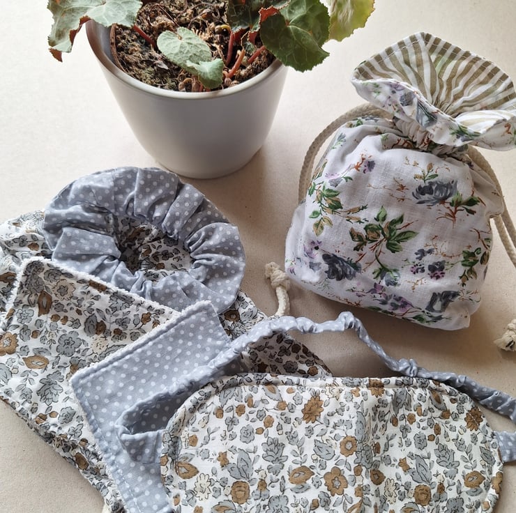 Beautifully handmade fully lined drawstring bag, containing: