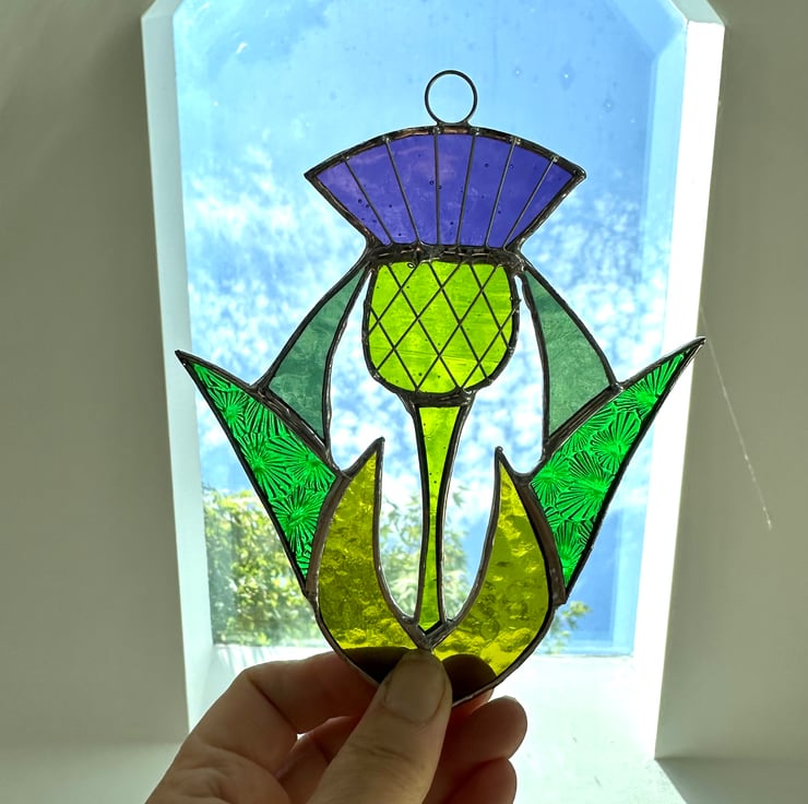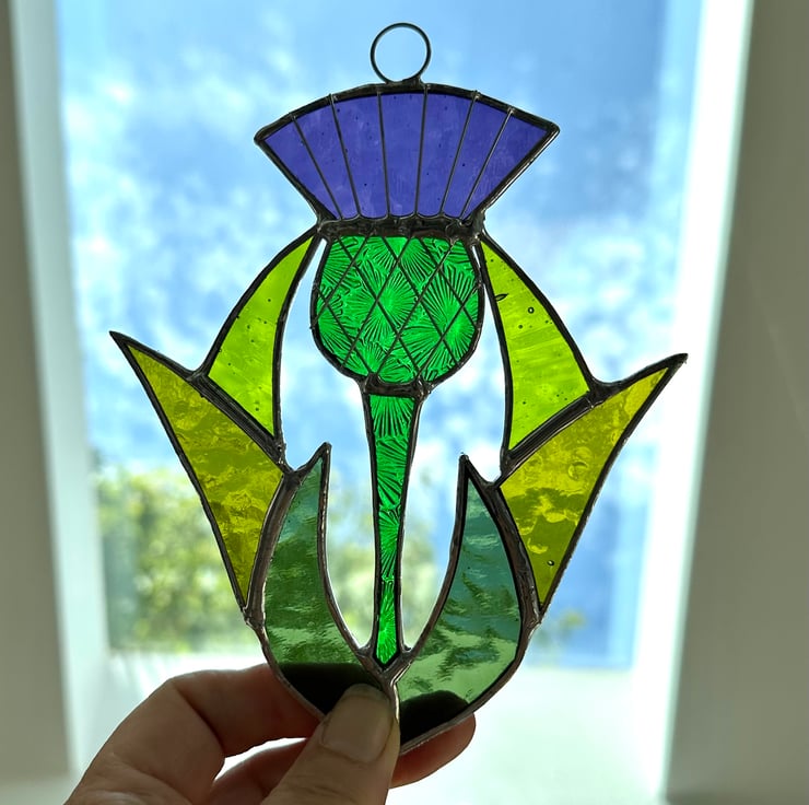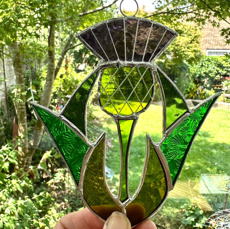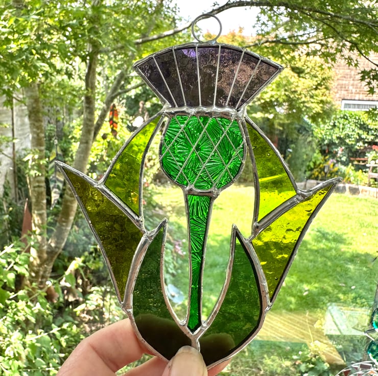 Scottish thistle made it stained glass by Carole’s Glass.