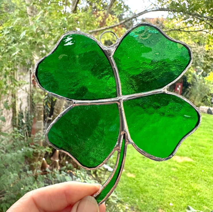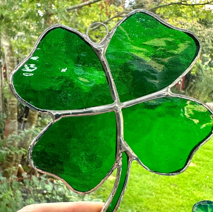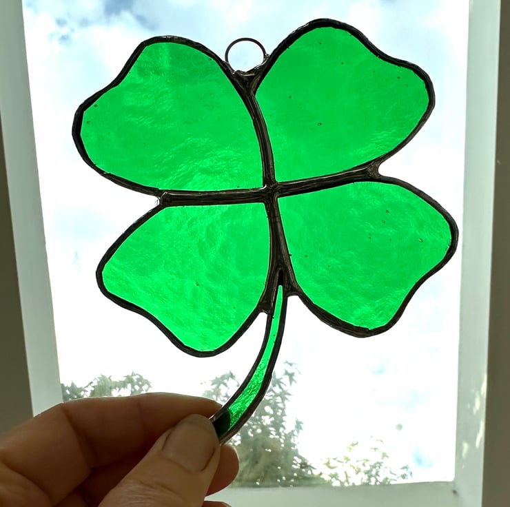 Clover suncatcher made in lovely green glass by Carole’s Glass.
