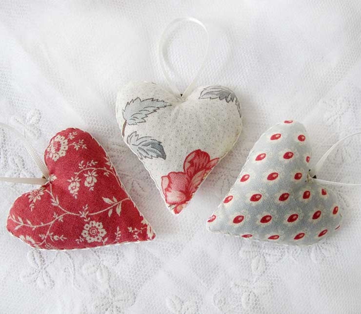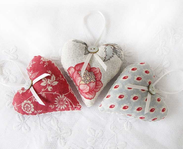 I have a long standing love of lavender and harvest it each year from my garden. Together with my ever growing collection of beautiful fabrics these little hearts help me use up my left over pieces while adding some wonderful fragrance to the home.