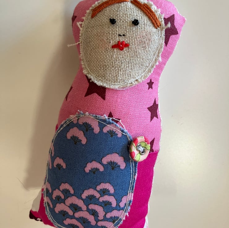 Fabric mini decorative hanging doll hand made in Devon by me